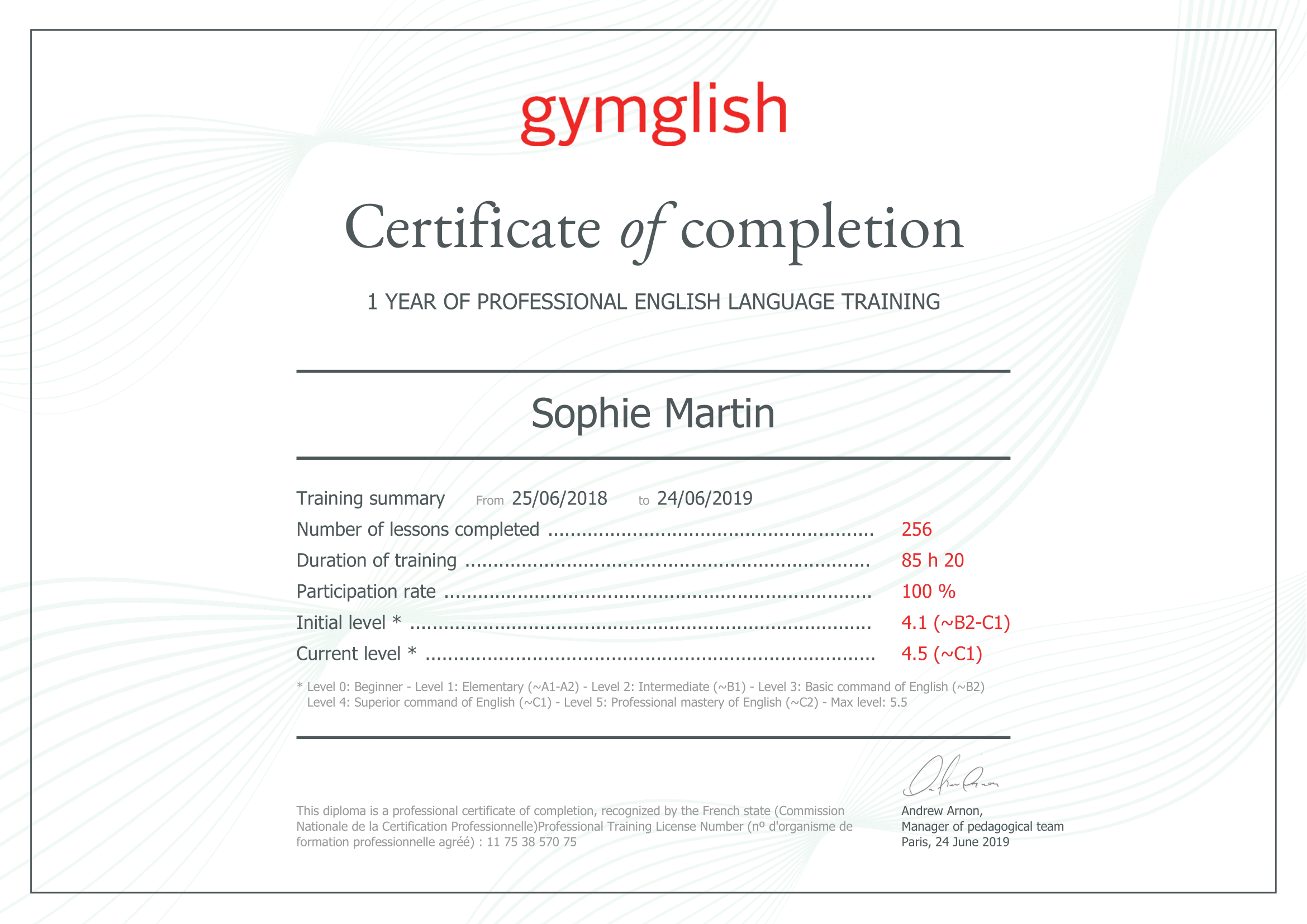 May - Le diplôme Gymglish est reconnu comme certification professionnelle par la Commission Nationale de la Certification Professionnelle (French)